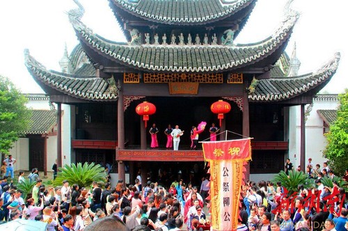 柳宗元是唐代著名文学家、哲学家、思想家,山西河东(今运城)人,唐宋八大家之一。从公元805年到815年,柳宗元从长安贬谪永州任司马10年。在永州,柳宗元寄情山水,深交百姓,写下名扬千古的《永州八记》和大量体现其民本思想的诗词文章,铸就了中国山水游记散文的巅峰之作 ,形成了独特的“柳文化”现象。清明祭柳成为永州多年来的文化盛事。今年由永州柳学会主办的清明祭柳,主祭人恭读祭文、焚烧帛书后,社会各界人士向柳子敬献了花篮,金沙集团1862cc、中小学师生吟诵柳诗、唱读柳文,讴歌和缅怀一代宗师柳宗元,群众自发地开展了舞龙、耍狮、文艺表演等民俗、文艺活动。