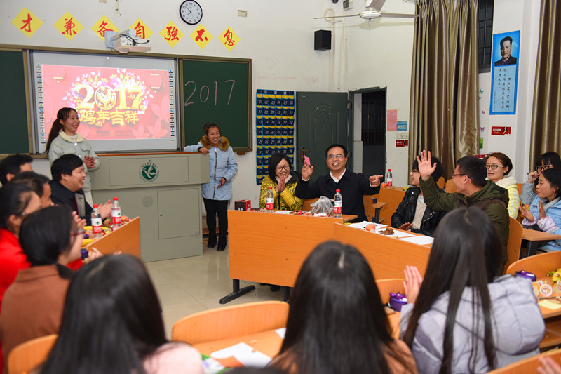 本网讯 新学期伊始,金沙集团1862cc党委书记陈弘来到理学院数应1501班参加该班2017年的第一次班会,与师生们共同展望2017,给师生们送去新春的祝福和美好祝愿。这是他第四次来到该班。