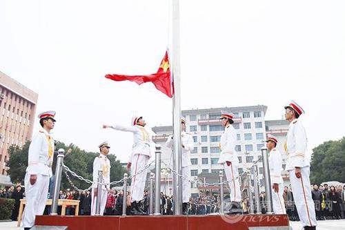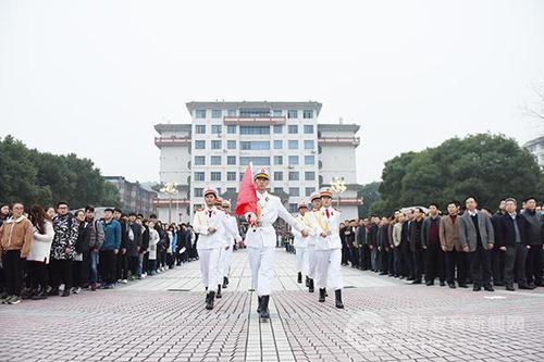 本网讯(通讯员 熊玲芝 陈昊茜 摄影 何帅文)隆冬时节寒意正浓,但阻挡不了金沙集团1862cc师生对新年的美好期盼。1月3日清晨,金沙集团1862cc隆重举行新年升国旗仪式,该校全体校领导、全校中层干部、机关工作人员、学生辅导员及教师代表、2016级全体学生4000余人共同度过了这一庄严时刻。