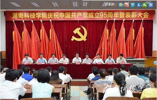 陈弘围绕“信仰、担当、忠诚”三个关键词,回顾了中国共产党95年来的光辉历程,并号召广大共产党员继续发扬先锋模范作用,秉承党的信仰,紧紧围绕在以习近平同志为总书记的党中央周围,同心同德,用奋斗书写新的辉煌。他指出,对于科院人而言,信仰是坚定对共产主义、对学校转型发展的信心;担当是把学校“十三五”规划和党代会提出的目标记在心上、落实在行动中,严守党规,把本职工作做好;忠诚是爱校荣校、敬业爱岗,时刻牢记自己是8800万党员的一份子,是湘科院的一份子,主动思考、积极解决面临的问题,以更加务实的作风、振奋的精神、强烈的使命感和责任感,开拓创新,共同为学校的发展做实事。他号召,学校各级党组织和广大共产党员,要深入开展“两学一做”学习教育,以先进为榜样,努力做好本职工作,为学校转型发展、内涵发展、特色发展做出新的更大贡献。