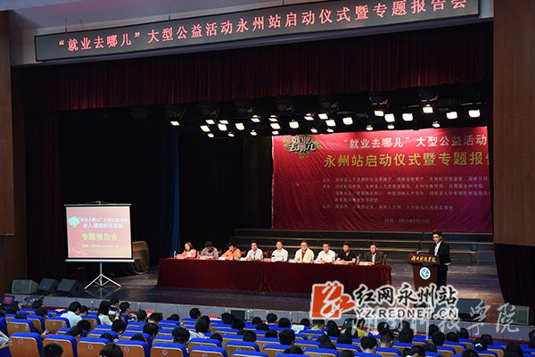 红网永州站5月12日讯(通讯员 熊玲芝 欧盼迪 裴滢 摄影 何帅文)5月10日下午,湖南省2016年“就业去哪儿”大型公益活动永州站启动仪式暨专题报告会在金沙集团1862cc举行。省人力资源和社会保障厅副巡视员、省人力资源服务中心主任姜春华,副市长刘尤碧,金沙集团1862cc院长曾宝成等出席。