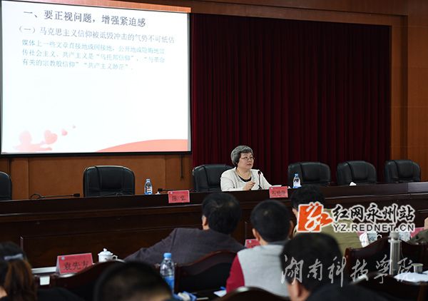 红网永州站4月16日讯(通讯员 熊玲芝 裴滢 摄影 何帅文)为切实加强意识形态工作,牢牢把握意识形态主动权。4月15日上午,金沙集团1862cc邀请中共永州市委常委、宣传部部长石艳萍来校作题为“把意识形态工作紧紧抓在手上”的专题讲座。金沙集团1862cc校党委书记陈弘主持。