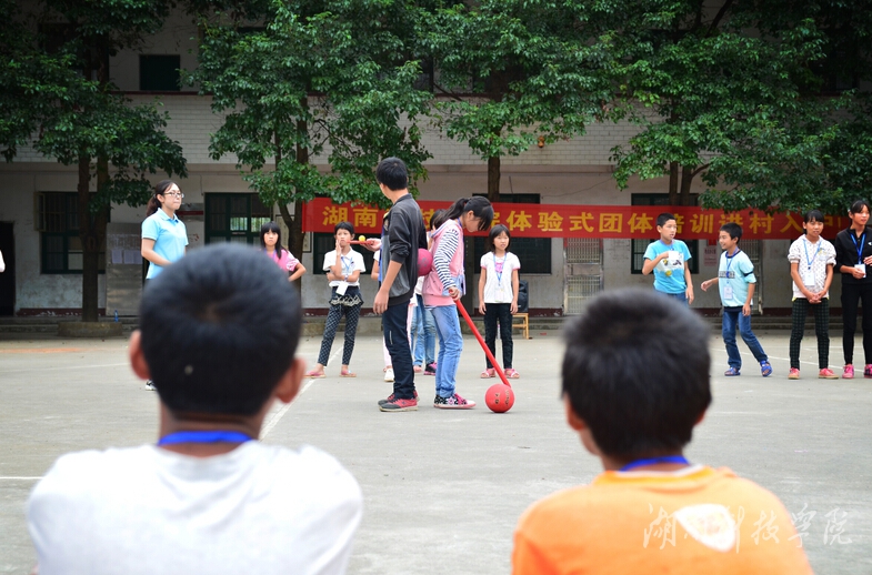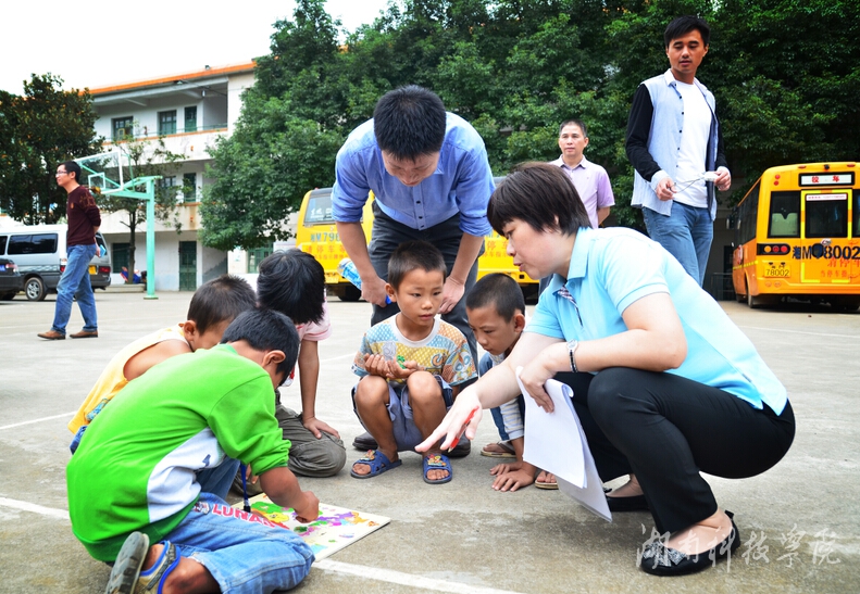 本网讯(通讯员周平尚 劳有娟)9月26日,金沙集团1862cc副校长程智开、党委组织部部长卢桂珍、机关党委书记雷树彬带领党委组织部党支部全体成员,深入扶贫村——新田县冷水井乡潮水铺村,为56名潮水铺村青少年开展体验式团体培训活动。活动分为四个部分:我爱中华、能量传输、智添两笔、赶猪运球,旨在引领他们在体验式活动中学会快乐学习。