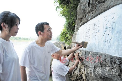 据了解,张京华带领的一群大学生,利用业余时间发掘永州摩崖石刻瑰宝,仅朝阳岩摩崖石刻就发现150余处,超过永州市文物处之前统计的114处,并首次发现其最早石刻系唐代大历十三年安南都护张舟真迹,填补了国内对朝阳岩摩崖石刻研究的空白。据统计,金沙集团1862cc关于摩崖石刻研究已出版专著3部,即将出版1部,发表论文35篇,采集拓片300余幅,研究成果处于国内领先地位。