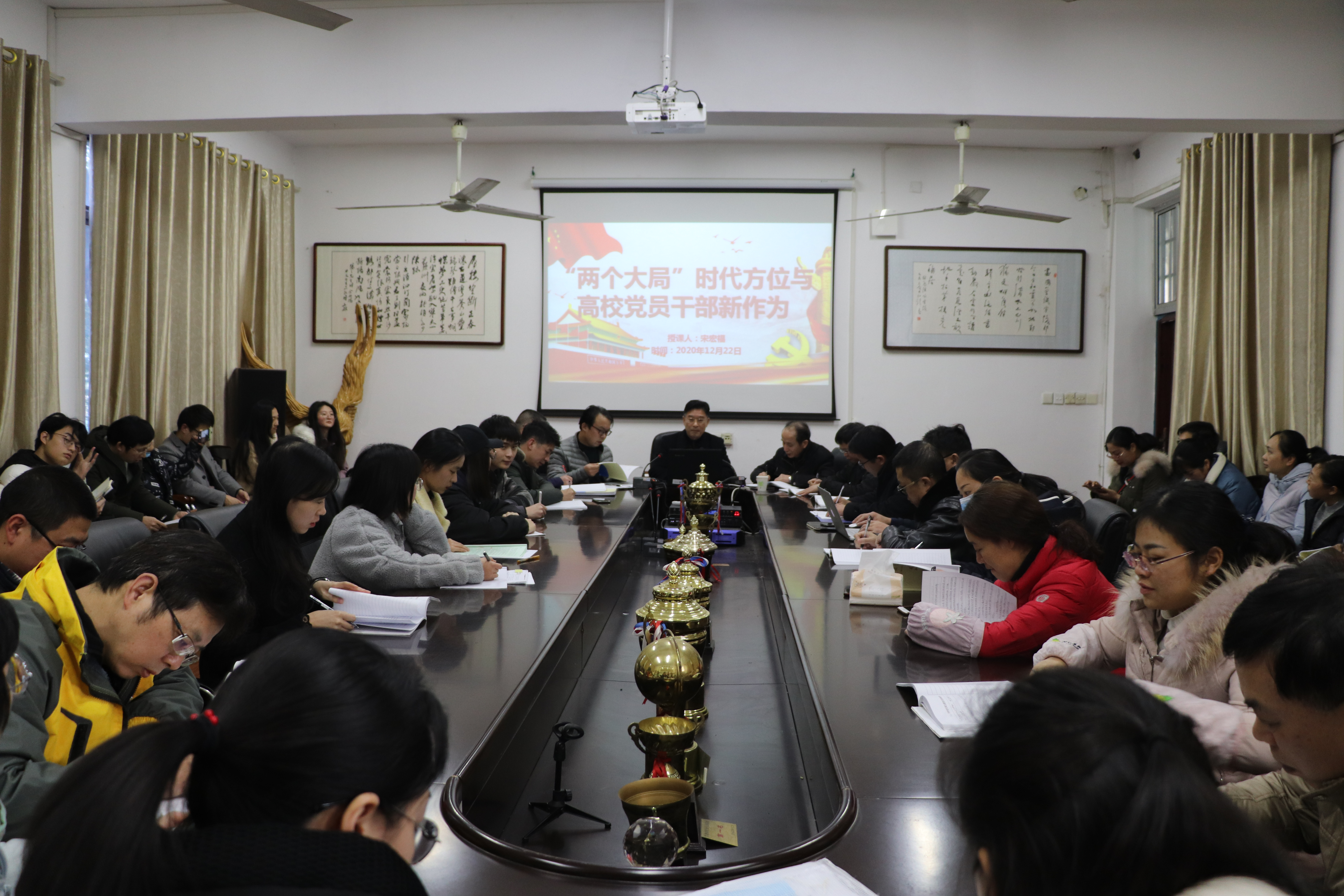 宋宏福深刻阐述了“两个大局”的世界大势和时代特征,重点讲述在大变局中如何开启科教强国新征程,并结合工作对党员干部提出新的时代要求。他强调,中华民族伟大复兴的战略全局,定位了我们谋划工作的国内坐标,世界百年未有之大变局,定位了我们谋划工作的国际坐标;要辩证认识和把握国内外大势,深刻认识我国社会主要矛盾发展变化带来的新特征新要求,深刻认识错综复杂的国际环境带来的新矛盾新挑战,增强机遇意识和风险意识,准确识变、科学应变、主动求变,在把握大事、服务大局中定好坐标,找准定位;进一步强化大局意识,树立大局观念,把工作放到两个大局中去思考、去谋划、去推进,立足更高站位担当育人责任,加快推进学院内涵发展,特色发展,跨越发展,努力提升学院办学质量和人才培养质量。