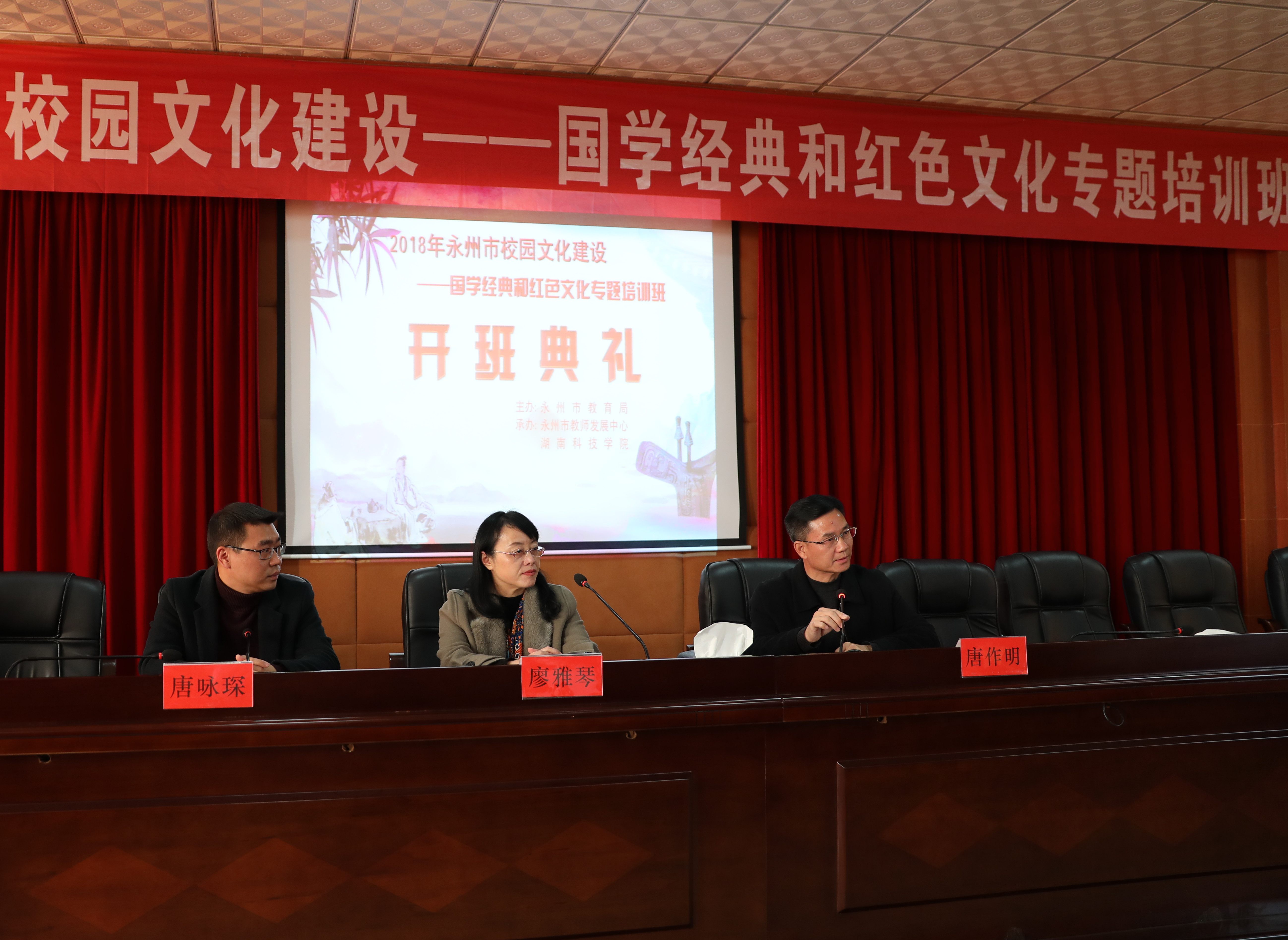 本网讯 为切实落实学校立德树人教育根本任务,促进校园文化建设内涵发展,12月17日,永州市校园文化建设——国学经典和红色文化专题培训班在金沙集团开班。永州市教师发展中心主任唐作明、教研员唐咏琛及马克思主义学院院长廖雅琴等参加了开班仪式,来自全市各县区、直属学校的135名中小学教师参加了本次培训。