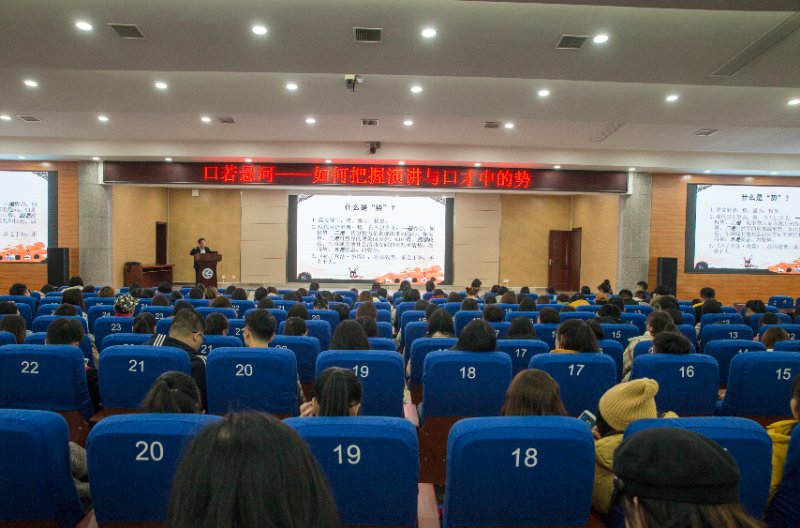 谭必平全场围绕一个“势”字展开,从“蓄势待发”、“审时度势”、“借力造势”、“势不可挡”四个方面来进行剖析。讲座中,谭必平引经据典,口若悬河,滔滔不绝,展示了深厚的语言功力与气度。他幽默的语言、高昂的激情,赢得了广大师生热烈的掌声。