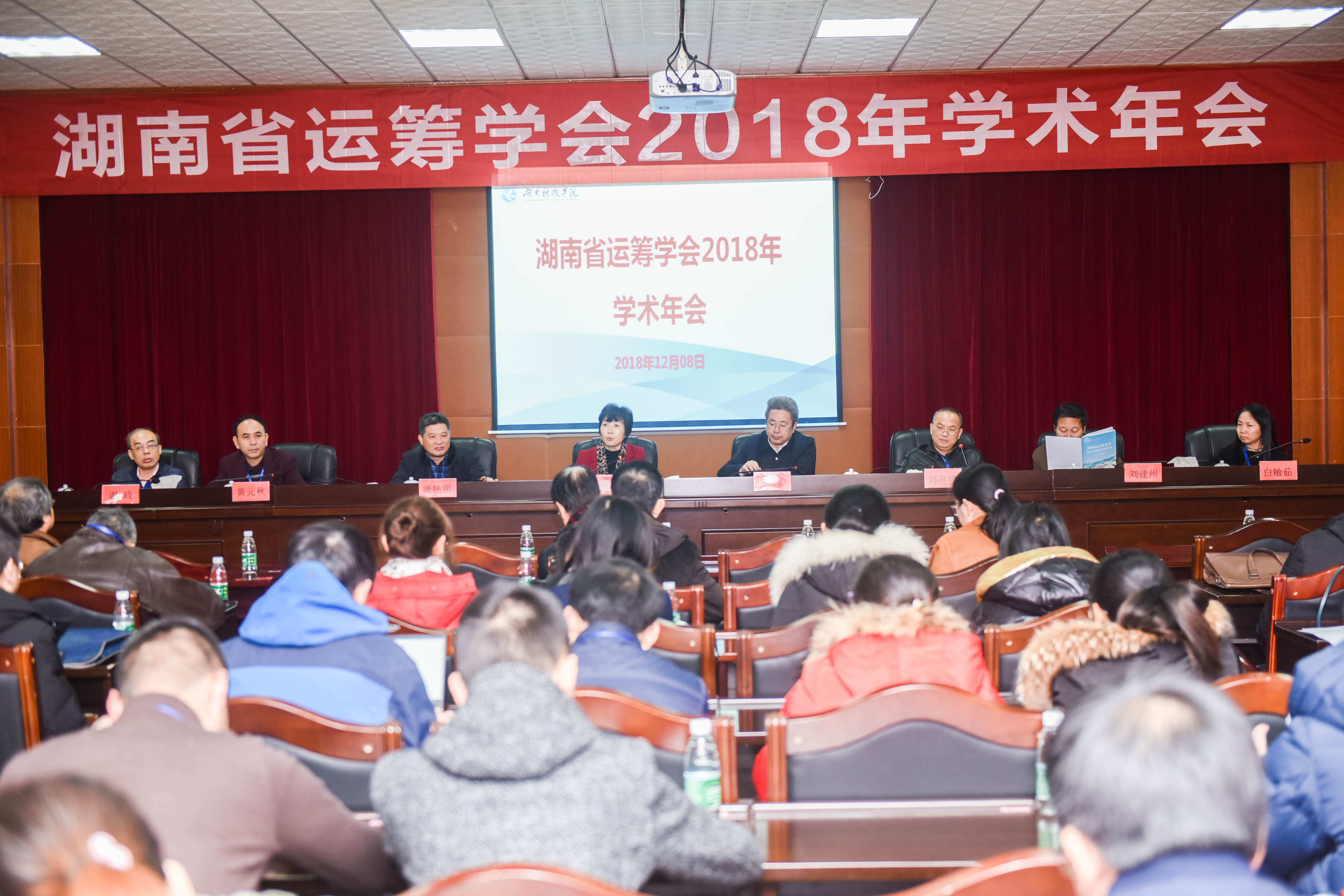 本网讯 12月8日,由湖南省运筹学会主办,理学院承办的湖南省运筹学会2018年学术年会在金沙集团召开。湖南省运筹学会理事长、湖南第一师范学院校长童小娇,校长曾宝成以及省内外各高校专家学者参加会议。