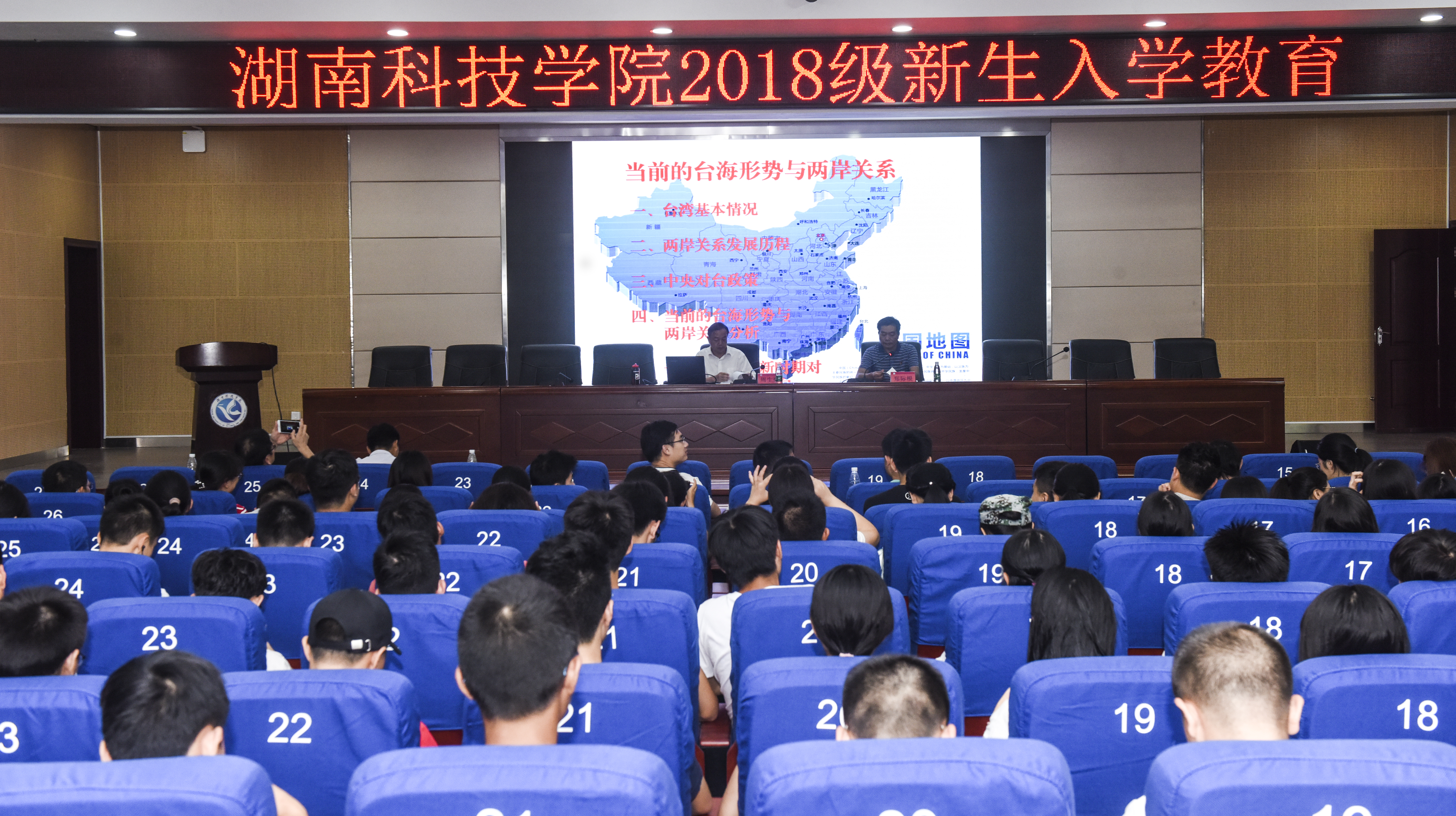 本网讯 9月14日晚,金沙集团邀请永州市委台湾工作办公室主任周生来为2018级新生作题为“当前的台海形势与两岸关系”的入学教育专题讲座,800余名新生聆听了讲座。校港澳台事务办公室主任郑际根主持。