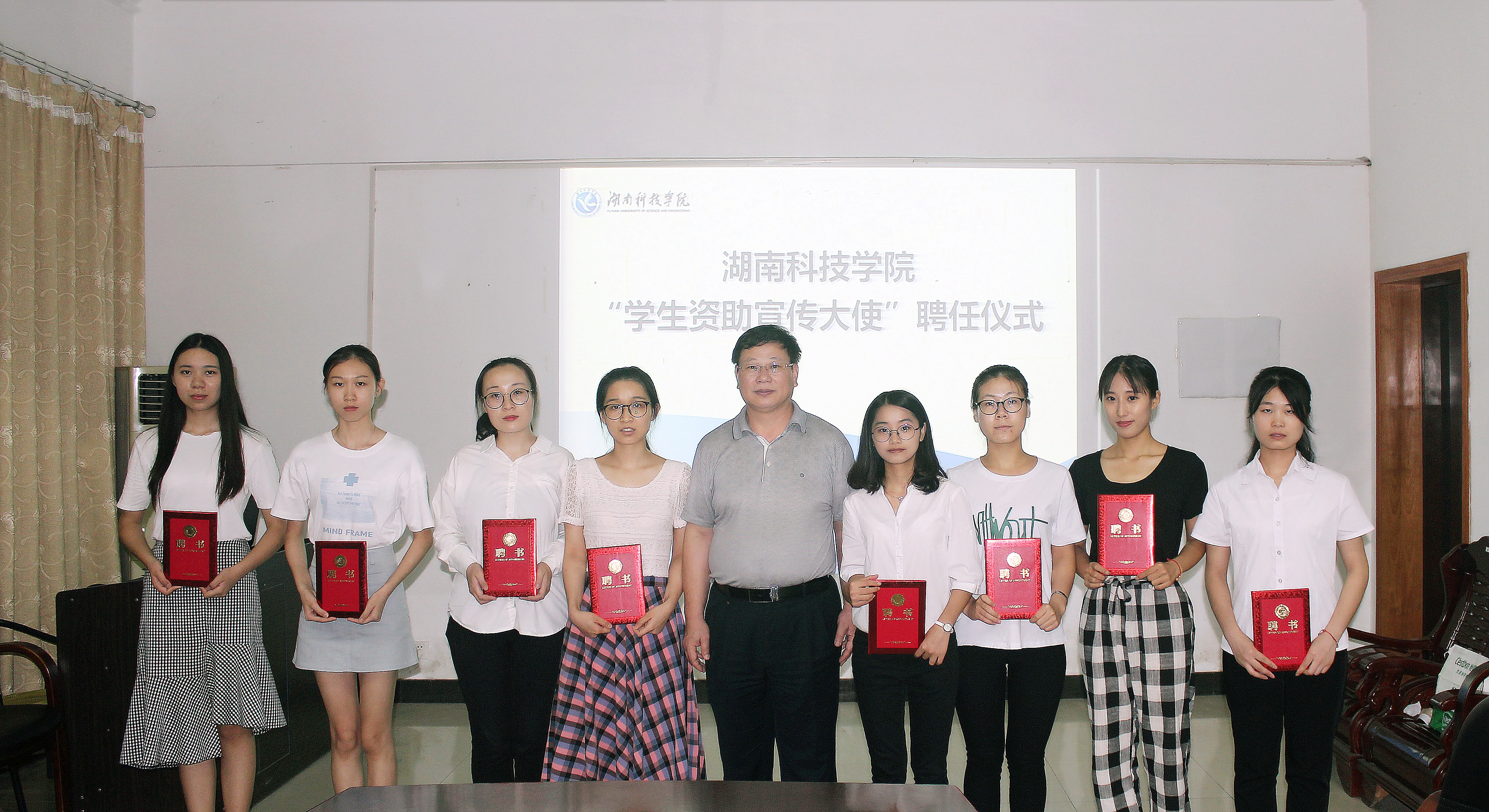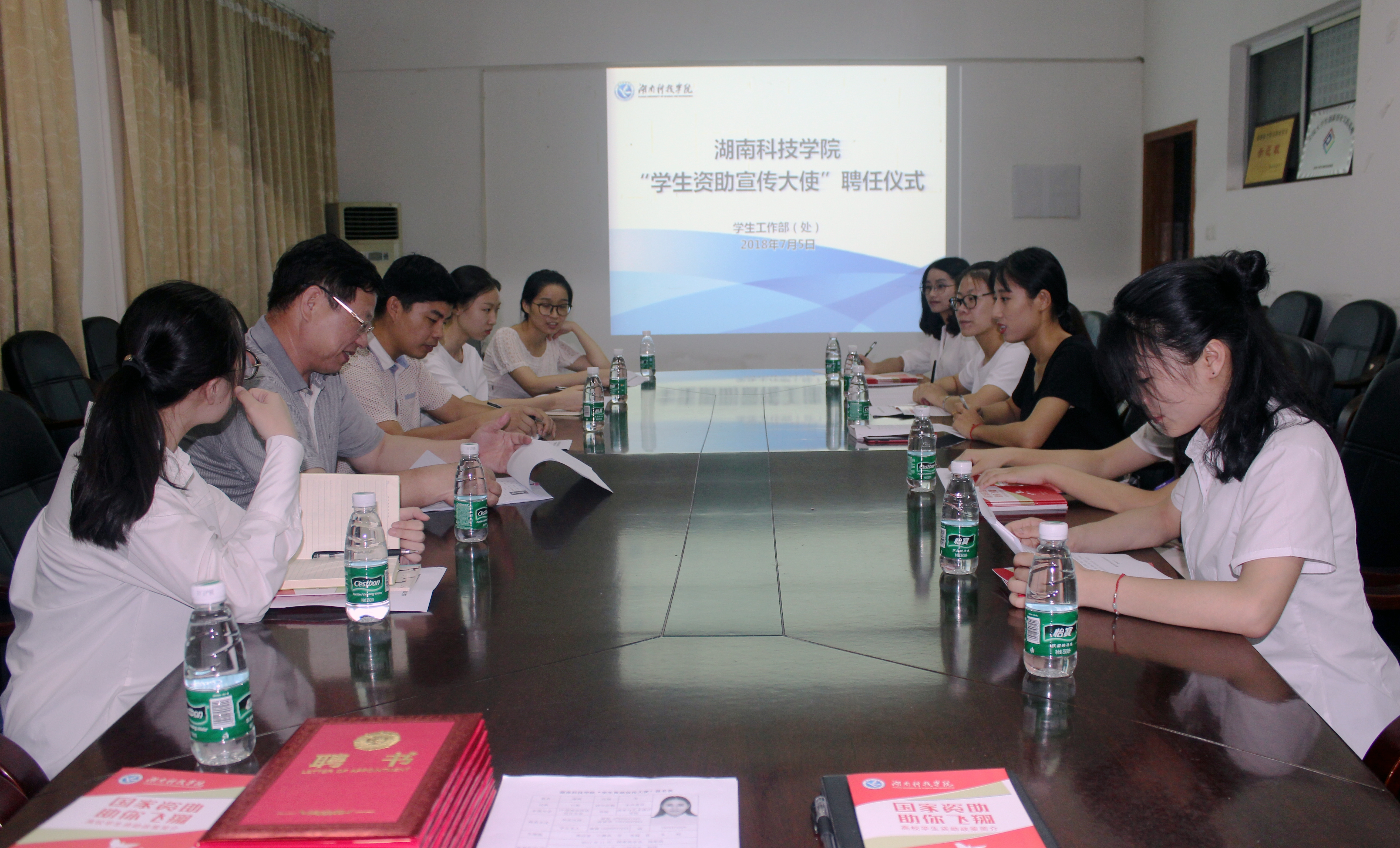 本网讯 7月5日晚,学校在行政楼105会议室举行首届“学生资助宣传大使”聘任仪式,学生工作部部长唐华山为学生资助宣传大使颁发聘书。