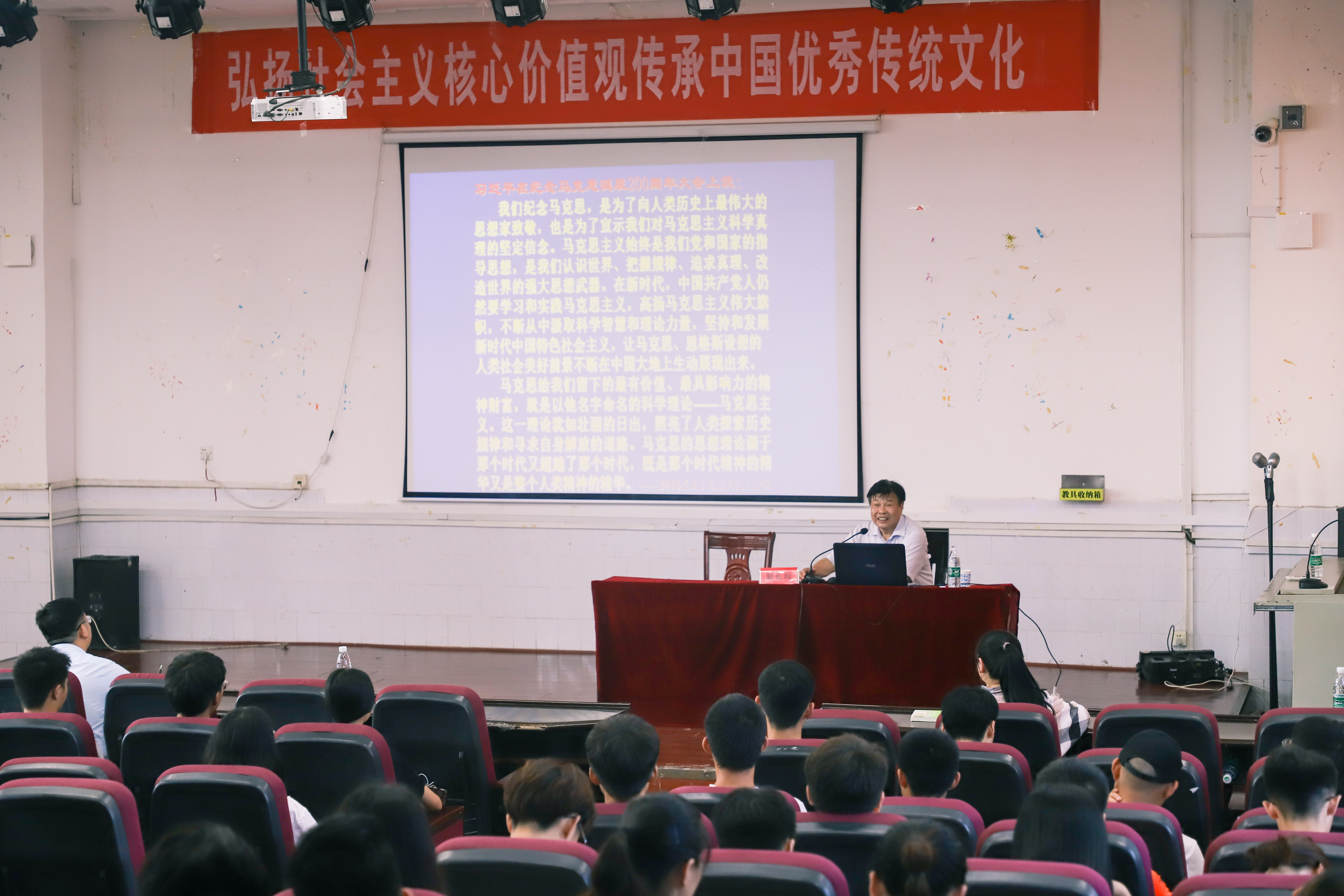 本网讯 6月26日下午,为深入学习习近平总书记在纪念马克思诞辰200周年大会上的重要讲话精神,进一步加强金沙集团团学干部、团员青年理想信念教育,引领青年学生用马克思主义理论武装头脑,校团委特举办“纪念马克思诞辰200周年”青年学生专题报告会。邀请中南大学马克思主义理论一级学科博士后流动站负责人曾长秋教授来校为大家做辅导报告。