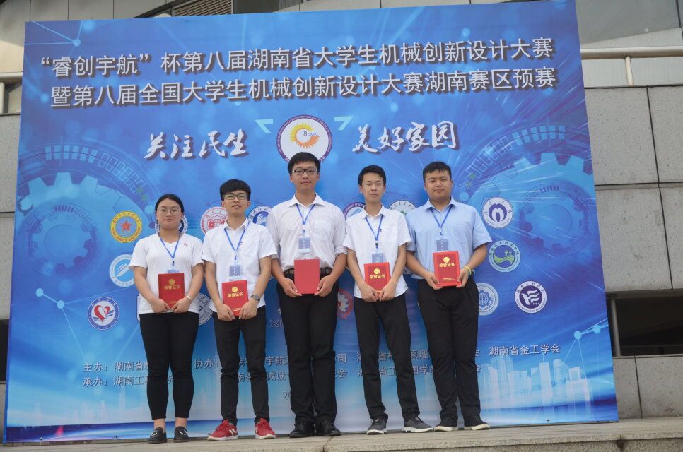 本网讯 5月11日至5月13日,第八届湖南省大学机械创新设计大赛在湖南工程学院举行,来自全省32个院校的248支队伍参赛,金沙集团电子与信息工程学院罗哲、杨文佳老师指导的马雪峰、伍博林、李鑫洋、汤伟明、崔锦雯同学荣获二等奖,实现了金沙集团在该类比赛项目获奖的零突破。