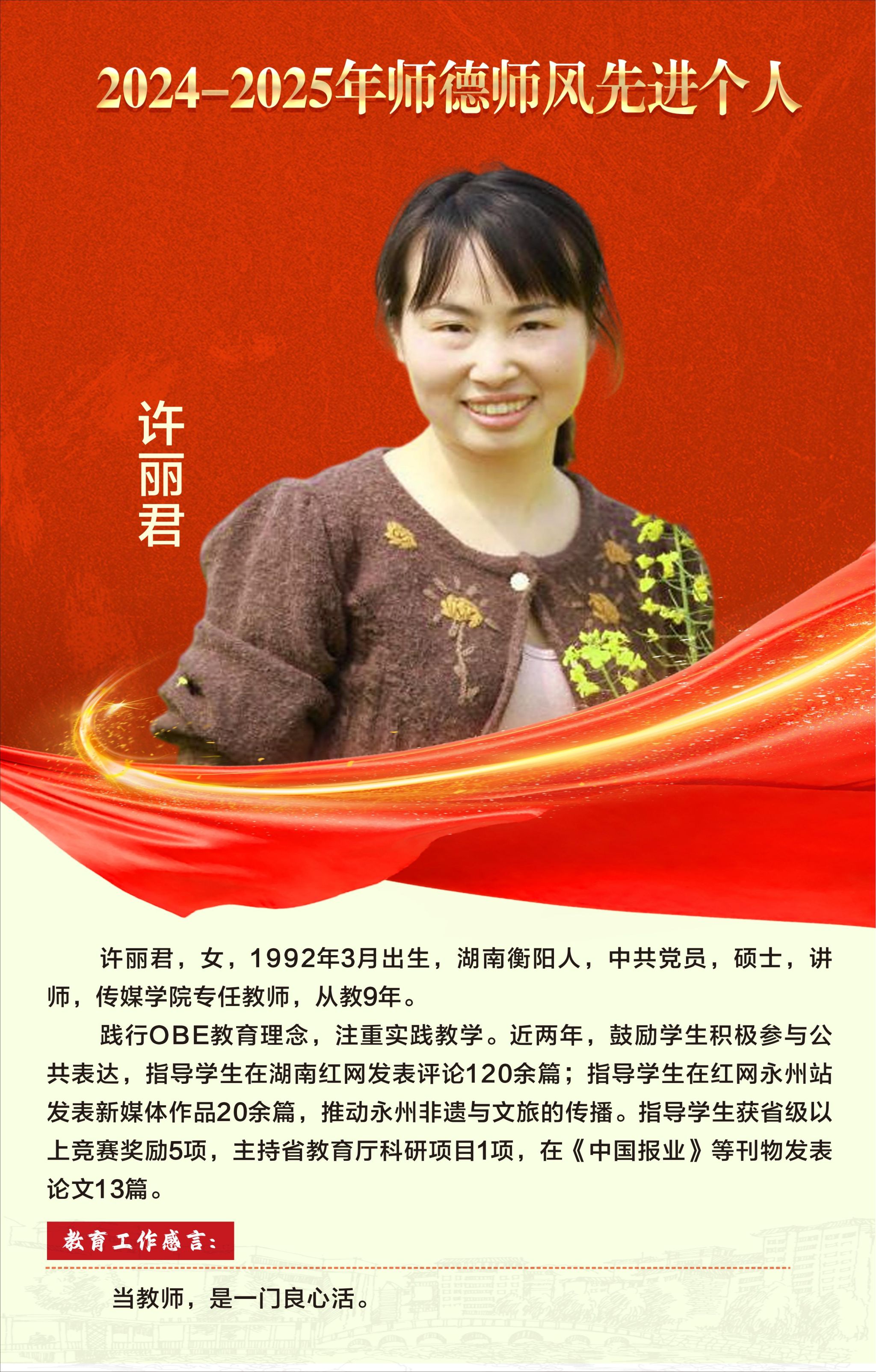 【编者按】:一片丹心育桃李,三尺讲台写春秋。在第41个教师节到来之际,为激励全校广大教师和教育工作者落实立德树人根本任务,积极投身教育强国建设,校园网特别开辟“弘扬教育家精神”专题栏目,营造尊师重教浓厚氛围,展现学校优秀教师风采,讲述教书育人暖心故事。