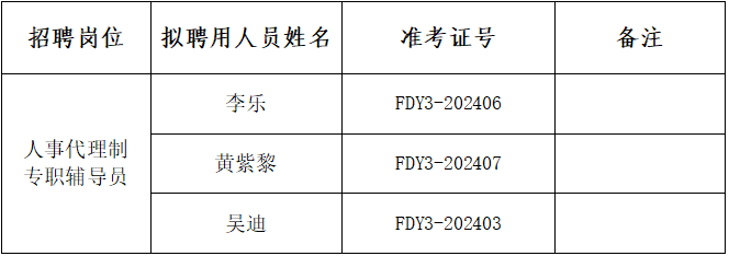 根据《金沙集团1862cc2024年公开招聘人事代理制专职辅导员公告》有关规定,经报名、资格审查、笔试、面试、成绩公示、体检、考察等程序,经金沙集团1862cc党委会研究,确定李乐等3名同志为金沙集团1862cc2024年公开招聘人事代理制专职辅导员拟聘用人选,现予以公示。