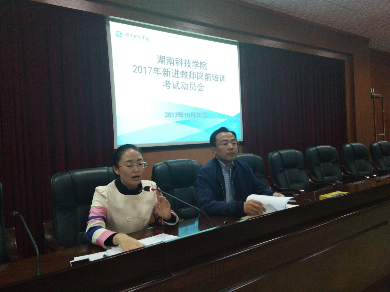 人事处蒋露茜老师组织大家认真学习了《湖南省高校教师岗前培训考试考务细则》,对组考安排和注意事项做了详细说明。